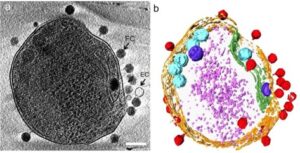 Look at the cryo-electron microscopy image of cyanophages infecting Prochlorococcus . Based on the video, which statement best explains the significance of this interaction in the ocean’s carbon cycle?